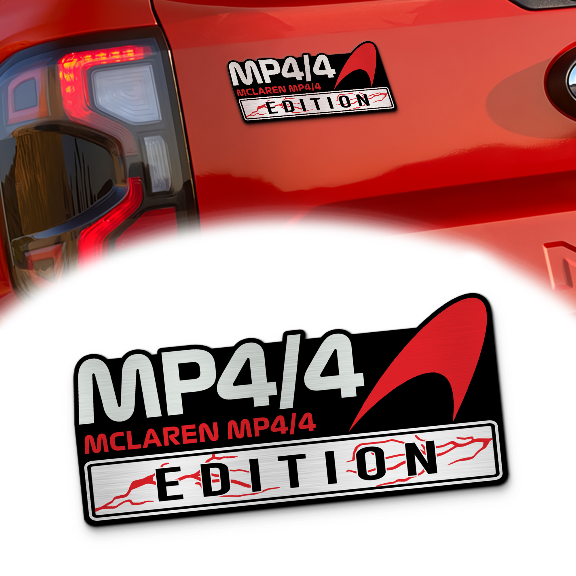 Carry perfection from track to street — own the McLaren MP4/4 Edition Car Emblem and drive with Formula 1 history behind you.