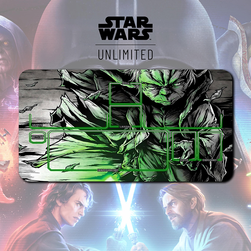 Answer the call of the Force with our Yoda Playmat — the perfect companion for every Star Wars: Unlimited duelist.