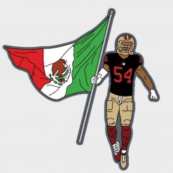 Show your pride for the 49ers and one of the league’s most respected linebackers with this bold Fred Warner button pin, featuring a striking Mexican flag color theme. A perfect accessory for game days, tailgates, and everyday fan gear.