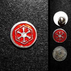 Crafted in a clean button pin format, this piece delivers a bold Dark Side presence in a compact, wearable form — perfect for daily wear, cosplay, or collector display.