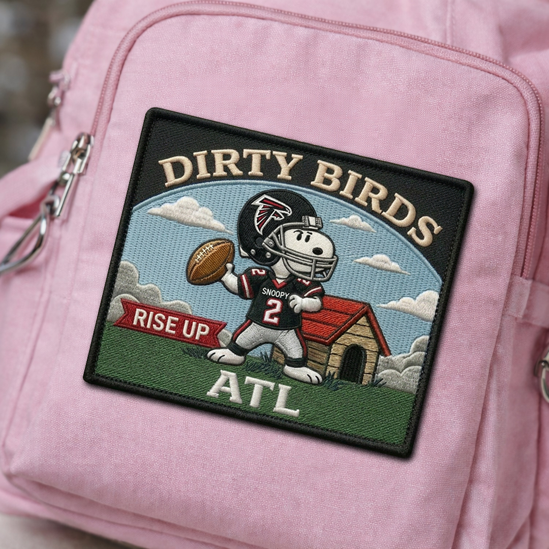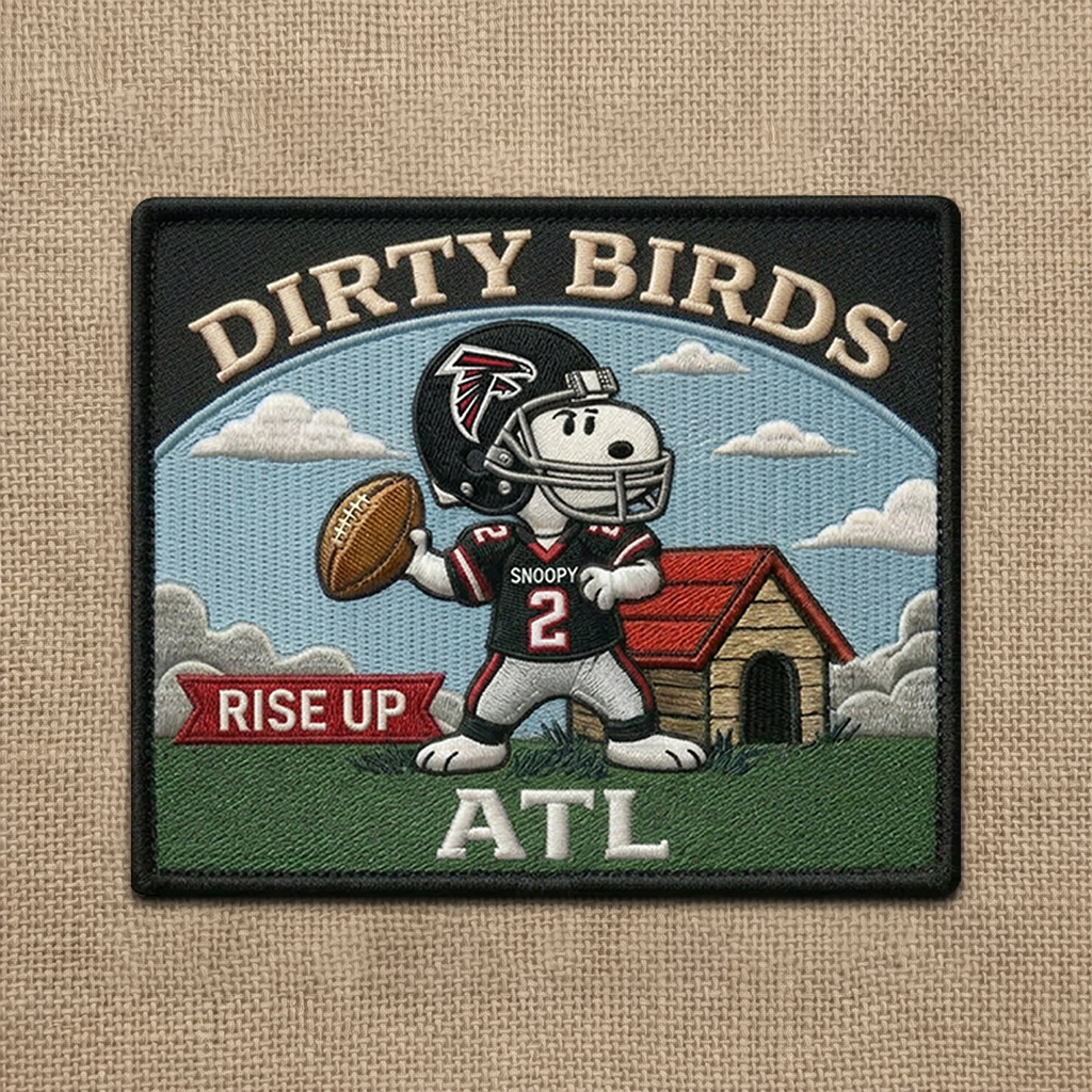 A football-inspired fan patch featuring Snoopy and the Atlanta Falcons.