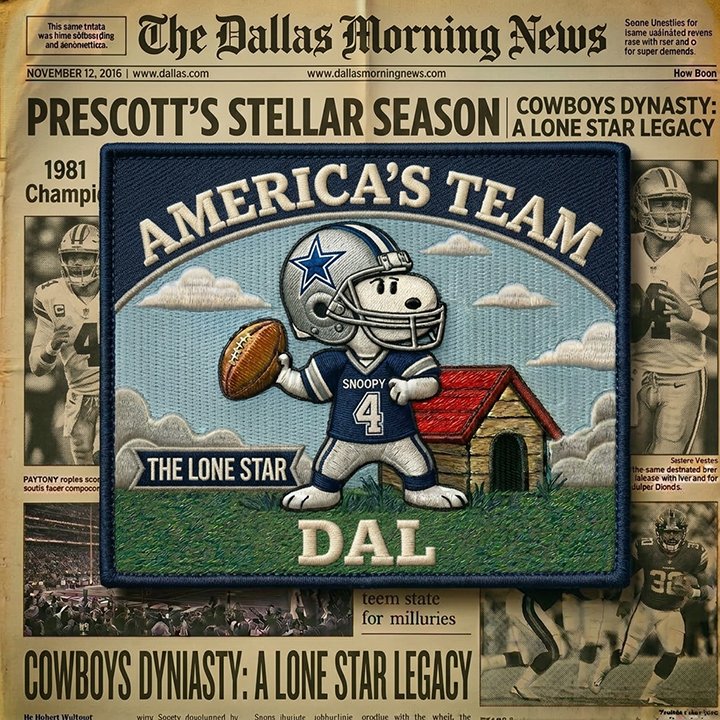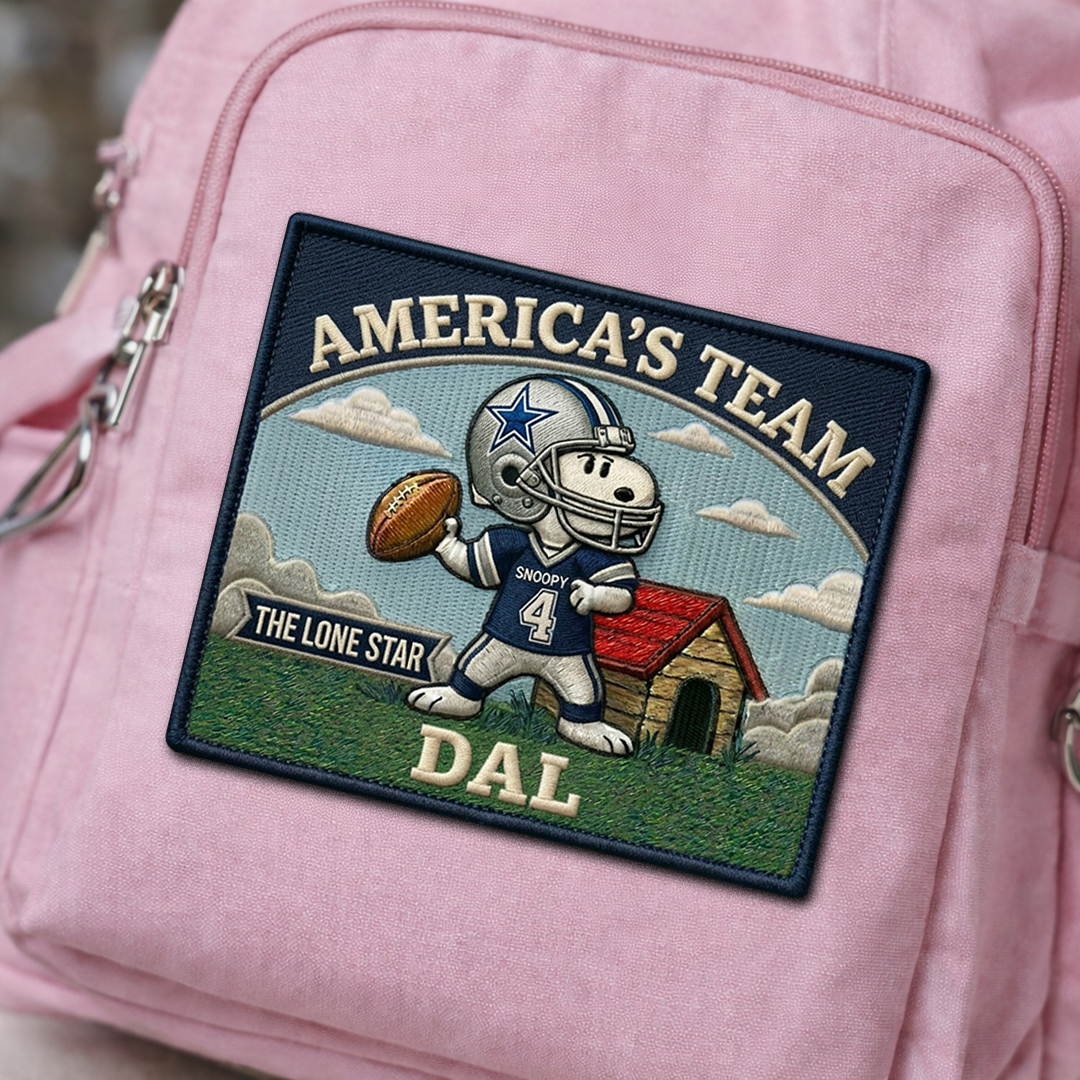 A football-inspired fan patch featuring Snoopy and the Dallas Cowboys.