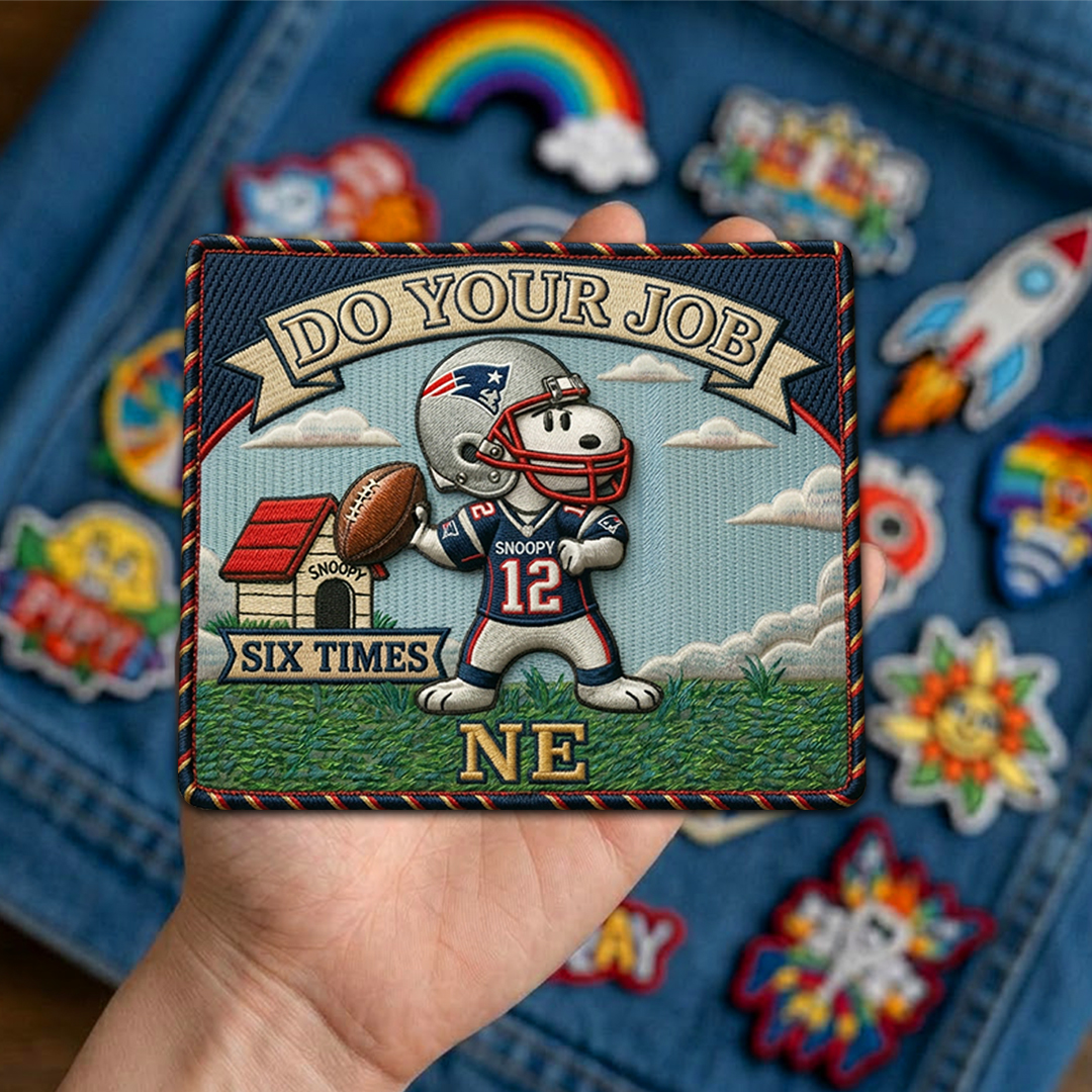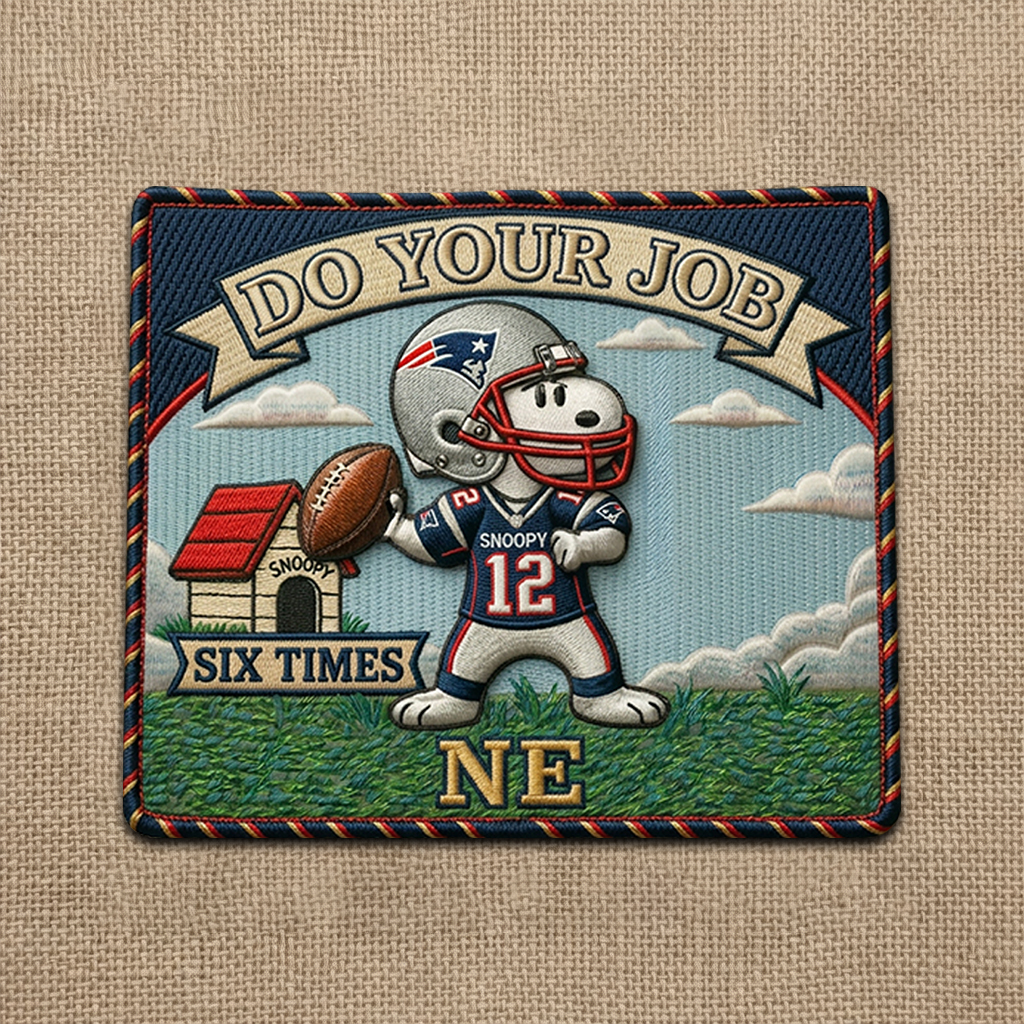 A football-inspired fan patch featuring Snoopy and the New England Patriots.
