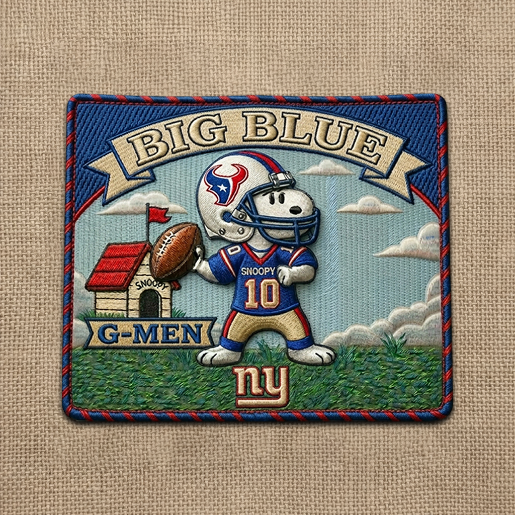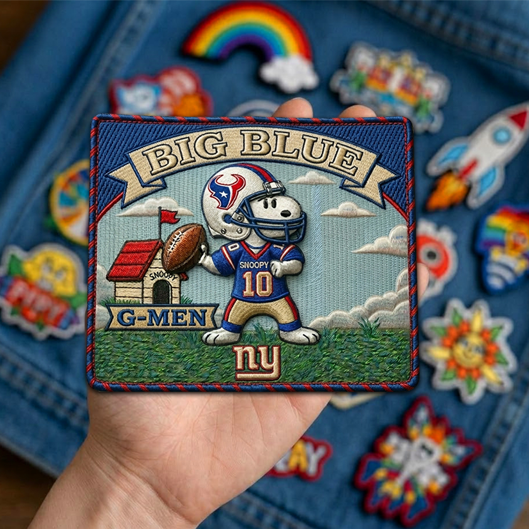 A football-inspired fan patch featuring Snoopy and the New York Giants.
