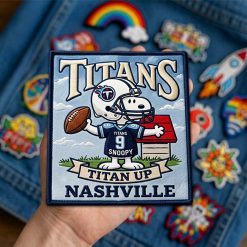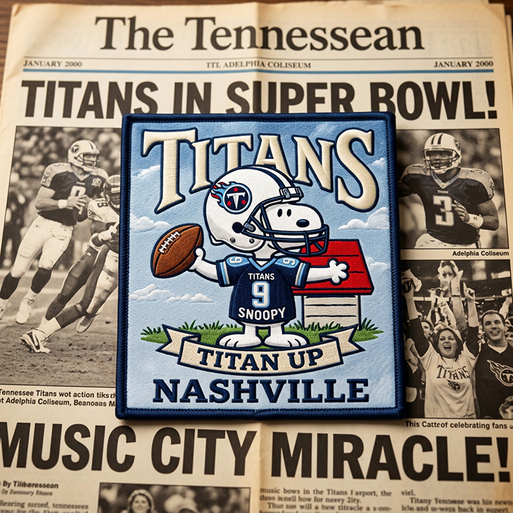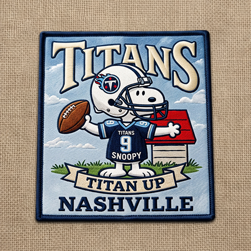 A football-inspired fan patch featuring Snoopy and the Tennessee Titans.