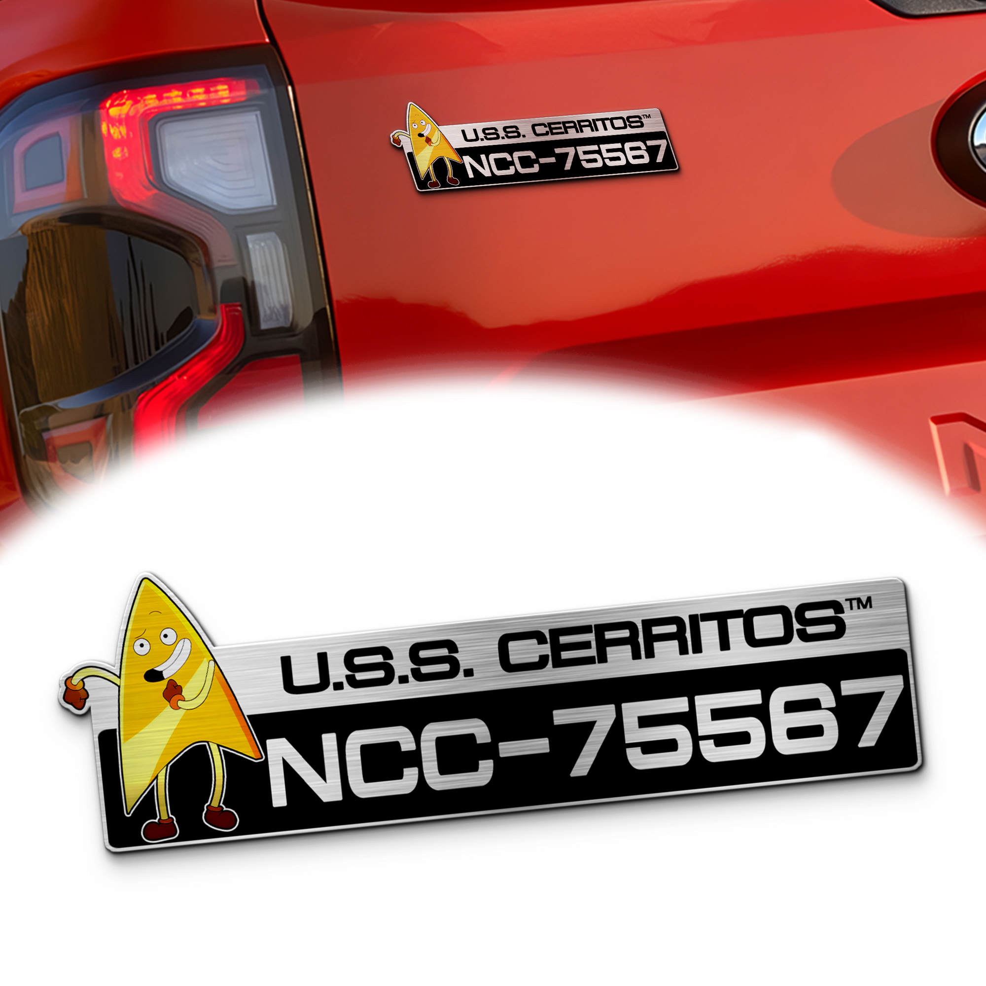 Make every drive a Starfleet mission — order your U.S.S. Cerritos NCC-75567 Car Emblem today and boldly go… to second contact!