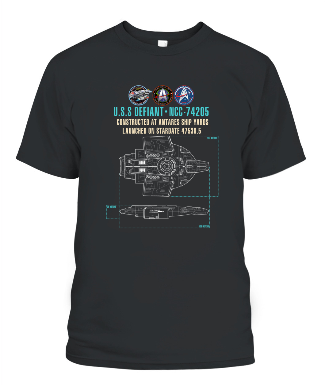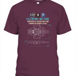 Inspired by the iconic U.S.S. Defiant, this schematic-style design turns a legendary Starfleet warship into a wearable piece of sci-fi heritage — a symbol of strength, strategy, and Federation engineering.