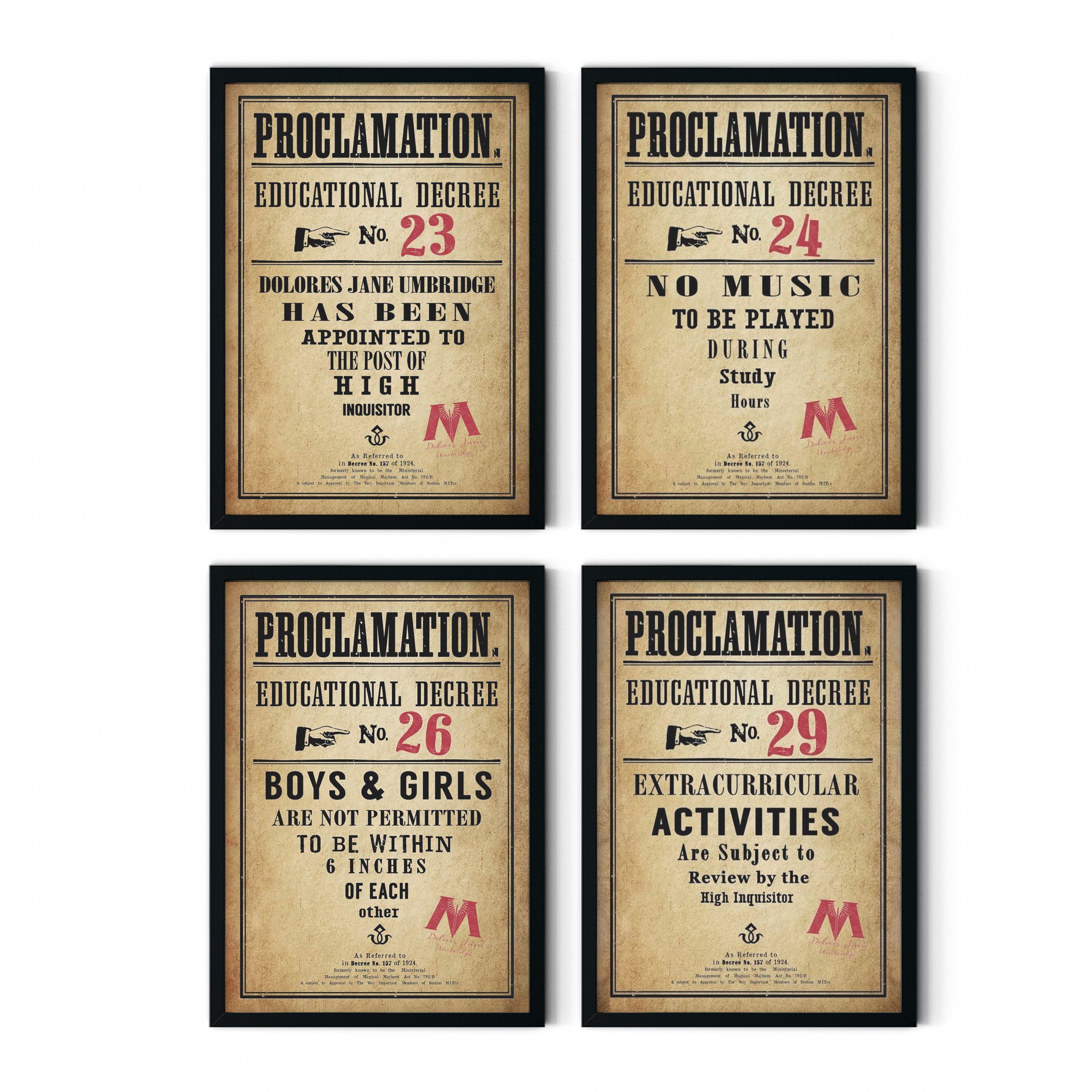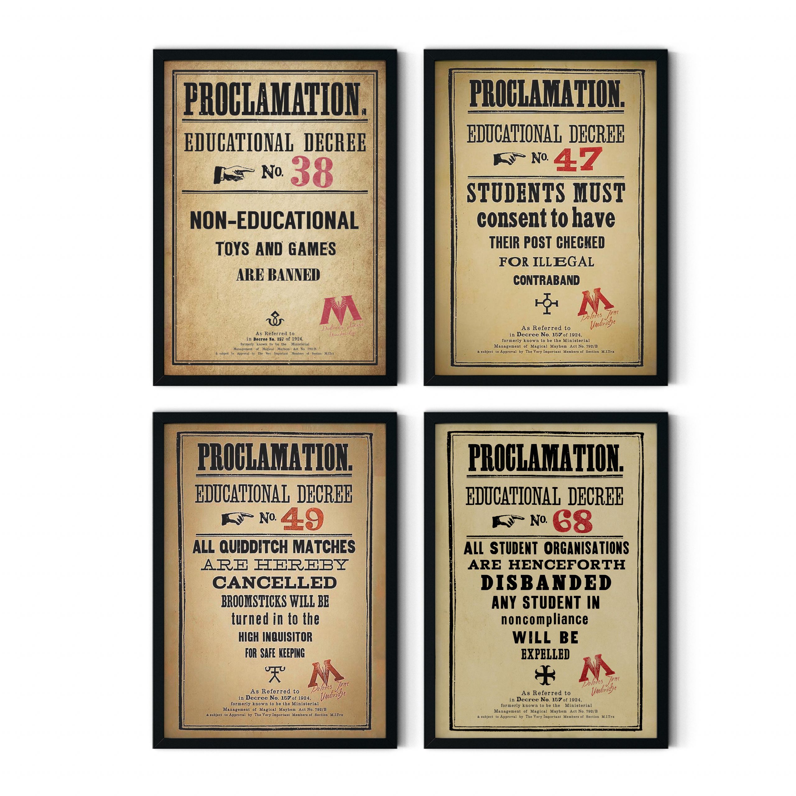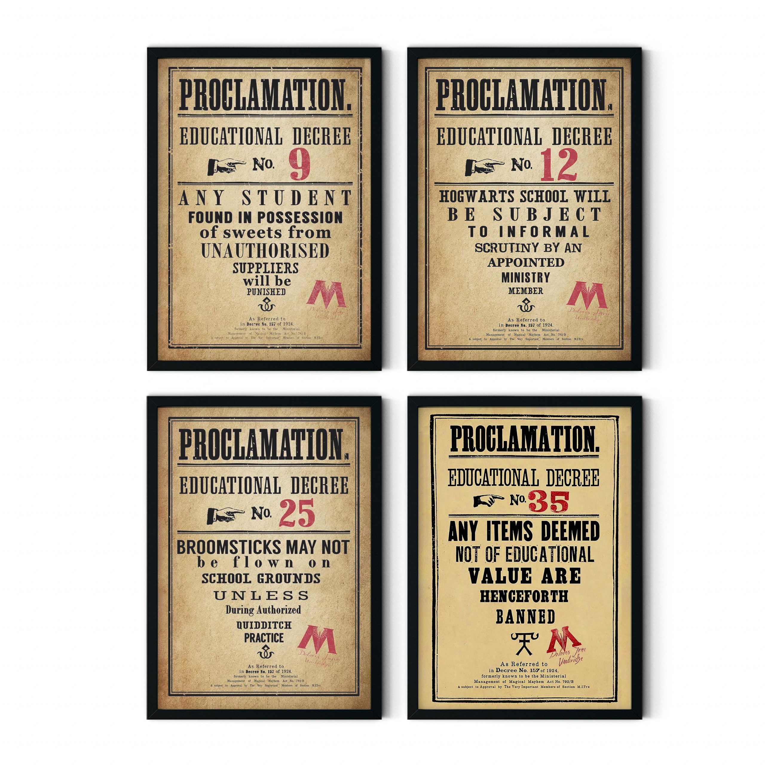 Bring a touch of wizarding chaos into your space with Wizard School Educational Decrees — inspired by the most infamous rules ever posted in the halls of magic.