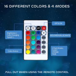 RGB LED base with 16 colors & 4 lighting modes (Flash, Strobe, Fade, Smooth)