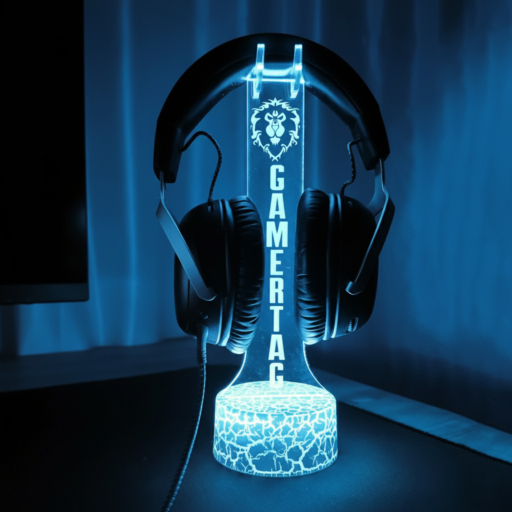 Bring the spirit of Azeroth straight to your gaming setup with this World of Warcraft Custom LED Headphone Stand. Designed for true WoW fans, this stand lets you choose your faction, personalize your name, and showcase your headset with a bold, immersive LED glow. More than just a headphone holder, it’s a statement piece that reflects your in-game identity, loyalty, and passion for World of Warcraft.